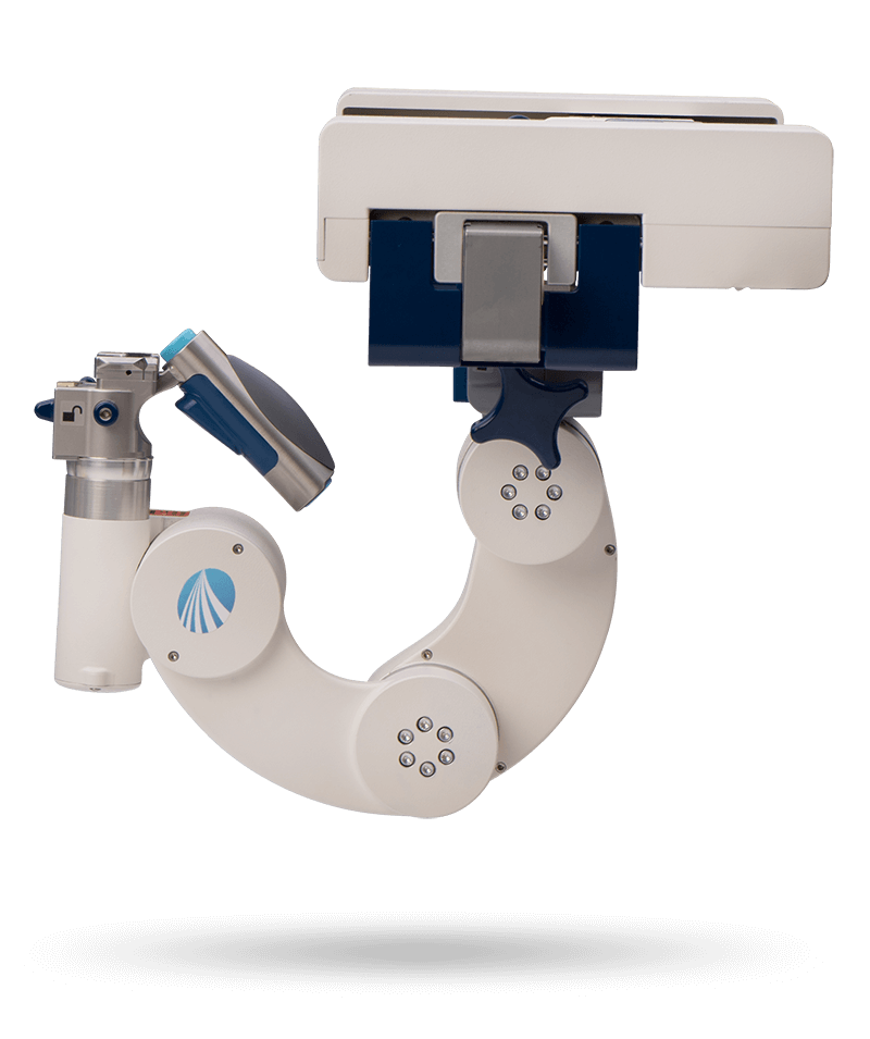 Der innovative elektromechanische Feststellmechanismus erlaubt eine sichere, schnelle und intuitive Bedienung. Visuelle und akustische Feedbacks stellen sicher, dass der Feststellmechanismus aktiviert wurde. Sechs Einstellungsvariablen ermöglichen eine perfekte preoperative und intraoperative Positionierung.