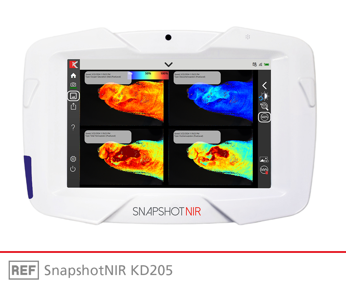 SnapshotNIR ist ein bildgebendes System zur nicht-invasiven, berührungslosen Messung der Gewebeoxygenierung. Es liefert innerhalb von Sekunden objektive Daten zur Perfusion direkt am Point-of-Care. Ob in der Wundversorgung, plastischen Chirurgie oder Gefässmedizin: SnapshotNIR unterstützt klinische Entscheidungen mit klaren visuellen Informationen zur Gewebedurchblutung und Sauerstoffsättigung – ganz ohne Kontrastmittel oder Strahlung.