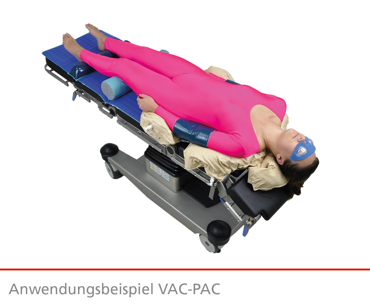 VAC-PAC Vakuummatten zur sicheren Patientenpositionierung im OP mittels Unterdruck. Die VAC-PAC sind für eine Vielzahl von Lagerungen besonders gut geeignet z.B.: Trendelenburg, Seitenlagerung, Beachchair-Lagerung oder bei der Lagerung adipöser Patienten.